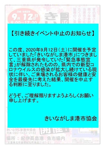 第21回三重紀北町海・山こだわり市の中止について 紀北町