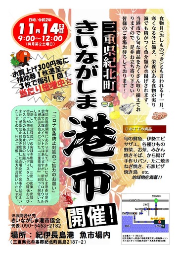 11月14日(土)紀北町で「きいながしま港市」が開催されます!