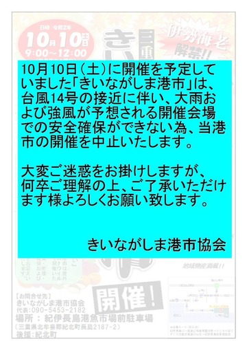【中止になりました】10月10日(土)紀北町「きいながしま港市」について