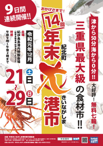 今年も9日間ぶっ続けで開催!『第14回年末きいながしま港市』 紀北町